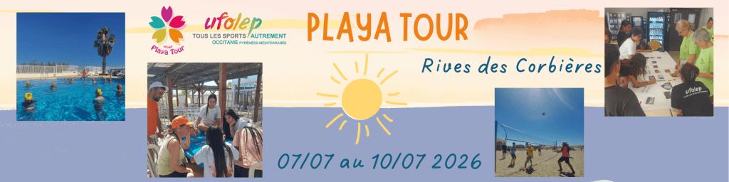 Du 7 au 10 juillet 2026, vivez une expérience unique au village vacances de Rives des Corbières à Port-Leucate avec le Playa Tour, l’événement phare du comité de l’UFOLEP initiées par le secteur du sport société..